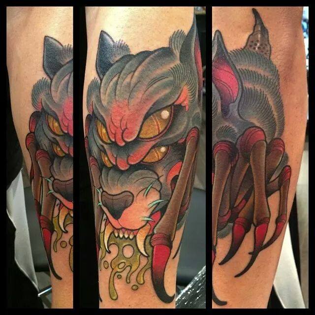 23. Tattoo Uploaded By Sarah Calavera • This Jaguar And Blade Flash Is Really Bold Artwork By David Tevenal On Instagram #Davidtevenal #Flash #Illustration #Colorwork #Artist #Blade #Jaguar #Newjapanese • 42083 • Tattoodo